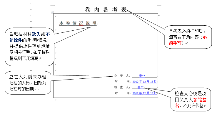 科研档案卷内目录和备考表填写示例