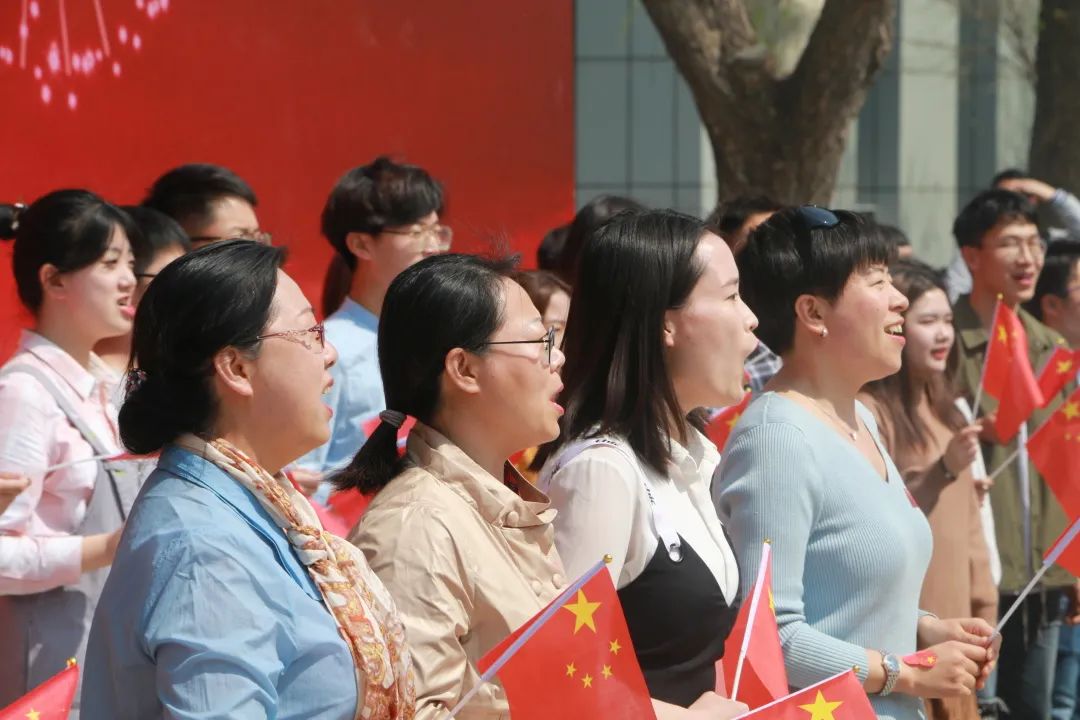 2019年4月4日,青年园南广场上,玉兰盛开,“我的祖国我奋斗 我为祖国献石油”KY开元集团官网入口庆祝中华人民共和国成立70周年的红色背景板在阳光照耀下熠熠生辉。正值下课时间,师生从校园各个方向汇聚到南广场上,共同唱响《我和我的祖国》《我为祖国献石油》,嘹亮的歌声、激昂的旋律响彻校园。中石大人用快闪的方式来祝福祖国。