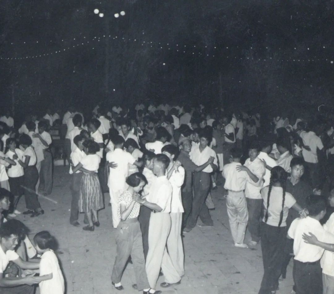 1959年暑假,北京石油学院的学生在青年园中举行的晚会上跳青年舞