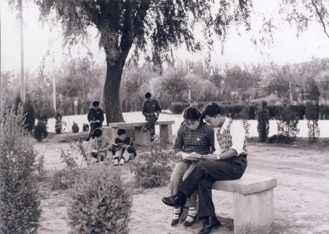 北京石油学院时期学生在青年园读书