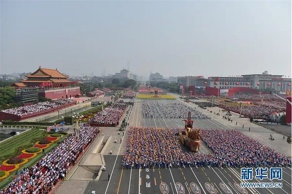 2019年10月1日,天安门广场举行盛大的群众游行,隆重庆祝新中国成立70周年。1032名中石大师生与1200名北京市国资委、市委农工委的代表共同组成群众游行8号方阵——“艰苦奋斗”方阵,踏着《社会主义好》的欢快旋律走过天安门广场,展现了新中国从一穷二白中艰难走来,在砥砺奋进中拼搏成长的壮志豪情。游行队员身穿石油工人、钢铁工人、纺织女工、农民等工装,高呼“祖国万岁”的祝福口号,振臂挥舞着红旗、麦穗,致敬勤劳,礼赞奋斗,祝福祖国风调雨顺国泰民安。