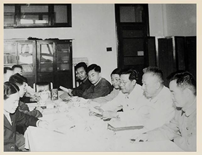 1958年,教研室主任杨光华和大家一起讨论学科专业建设