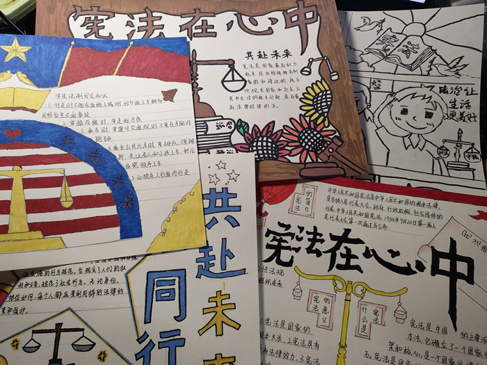 2024年6月5日—10日,22电商班线下开展“与法同行,共赴未来”法治手抄报制作大赛,班级同学以寝室为单位制作以法治为主题的手抄报,在实践中更好的普及法律知识,增强学生的法律意识和法治观念。