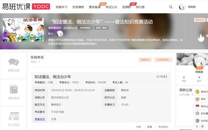 此次“推动法治教育,构建法治校园”易班系列活动的开展,旨在培养学生的法律意识、法治观念和法律素养,为同学们的个人发展和社会生活打下坚实的法治基础,自觉遵守法律,维护法律的尊严和权威,构建法治校园。