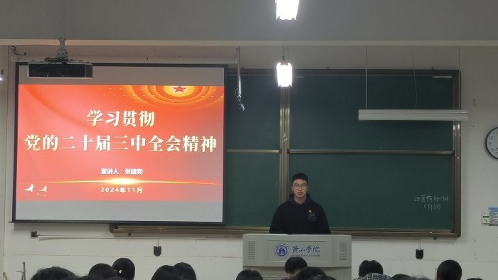 11月7日,金年会jinnianhuicom学生会团支部在横江校区教学楼1101教室举办学习贯彻党的二十届三中全会精神宣讲会,金年会jinnianhuicom团委宣讲团成员、院团委(学生)兼职副书记张建和担任主讲人,其围绕自己参军经历进行宣讲。此次宣讲会丰富了团支部的思想政治教育内容,也增强了广大团员和青年对党的政策方针的理解。