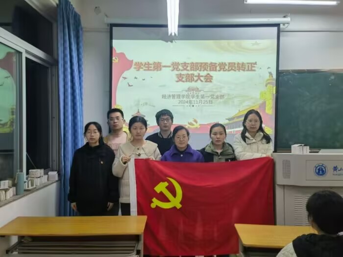 2024年11月25日,金年会jinnianhuicom学生第一党支部在金年会jinnianhuicom横江校区1207教室举行了吸收预备党员及预备党员转正支部大会,旨在进一步加强党组织建设,壮大党员队伍。本次大会讨论并表决了秦延婕、刘硕两名同志的入党事宜及严睿哲等6位同志的转正事宜。