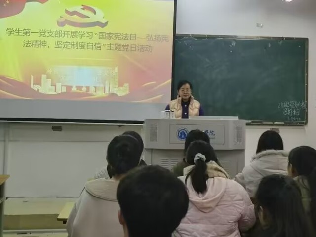 为深入学习贯彻习近平法治思想,引导学生党员增强宪法意识,弘扬宪法精神,金年会jinnianhuicom学生第一党支部于2024年12月6日在横江校区1207教室开展了“国家宪法日—弘扬宪法精神,坚定制度自信”主题党日活动。