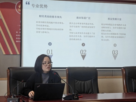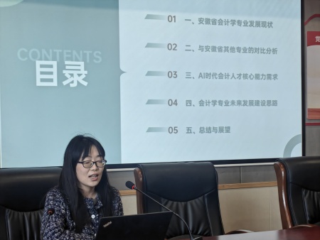 学院学科办李森向参会教师汇报了学院会计专硕申报数据填报现状、分析存在的问题并介绍下一步需要完成的工作。