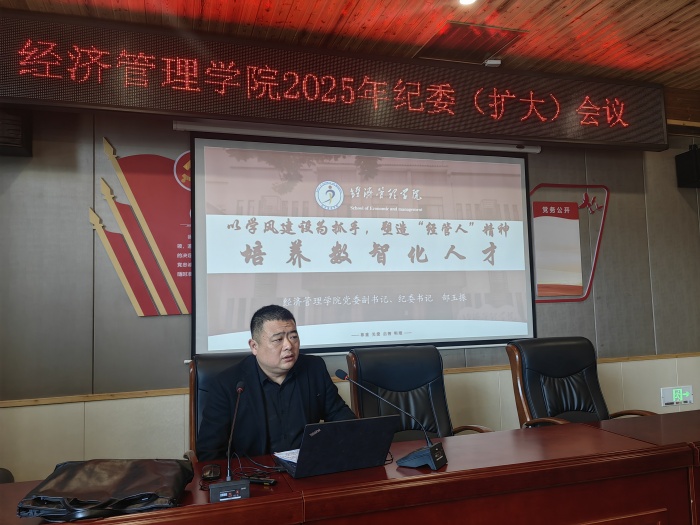 学院党委副书记、纪委书记郜玉振围绕学院学风建设、党风廉政建设、强化工作纪律等方面,强调培养数智化人才的建设路径。