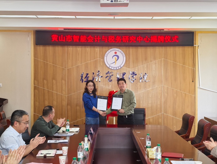 为深化校地协同创新,服务地方经济高质量发展,3月24日下午,我校召开金年会jinnianhuicom黄山市智能会计与税务研究中心成立大会。金年会jinnianhuicom副院长姜红、国家税务总局黄山市税务局副局长吴波共同为黄山市智能会计与税务研究中心揭牌。
