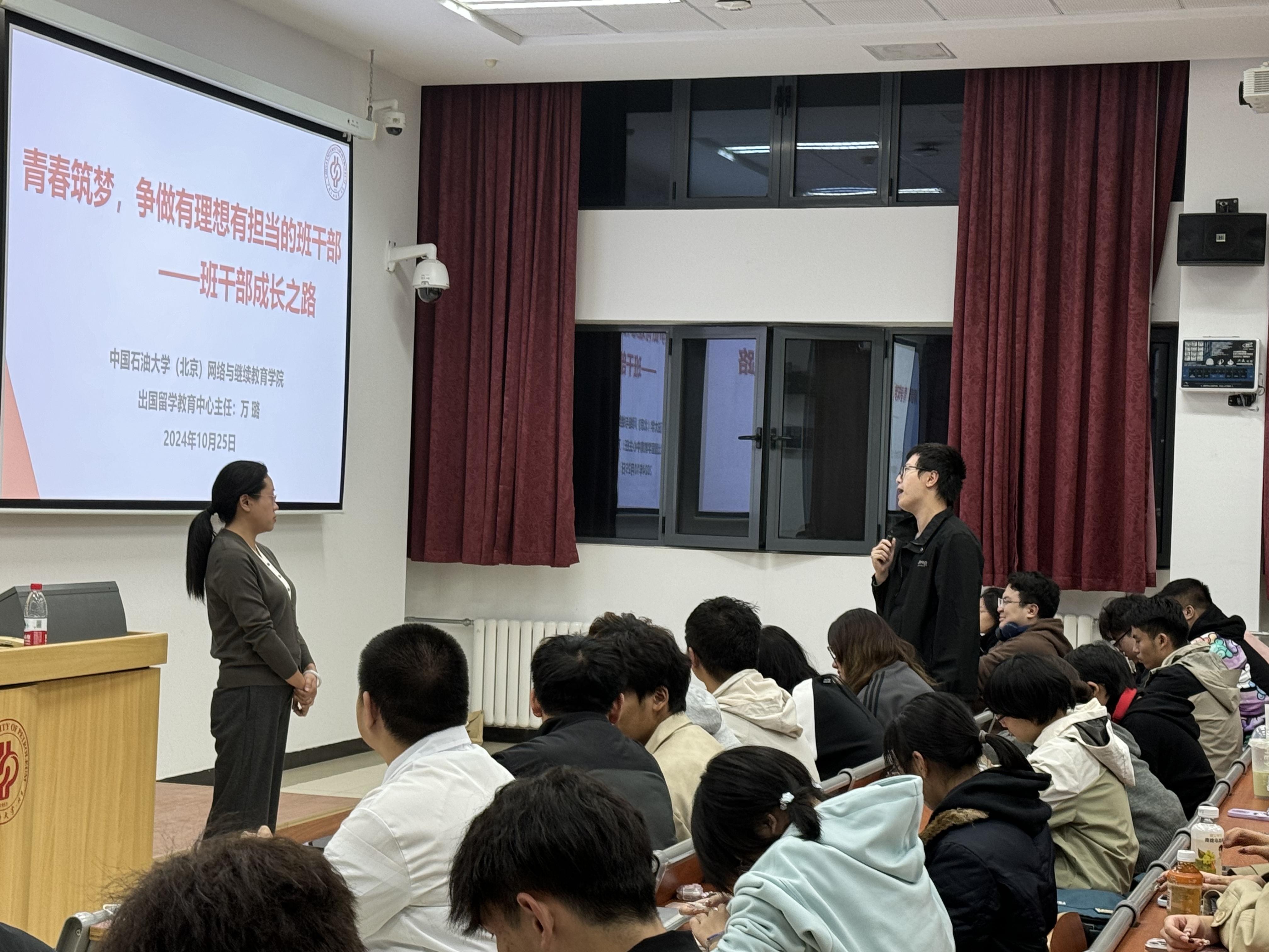 本次培训会以“青春筑梦,争做有理想有担当的班干部——干部成长之路”为主题,由出国留学教育中心主任万璐老师主讲,旨在提升班干部的综合素质和工作能力,培养有理想、有担当的学生干部队伍,助力班级管理和校园文化建设。