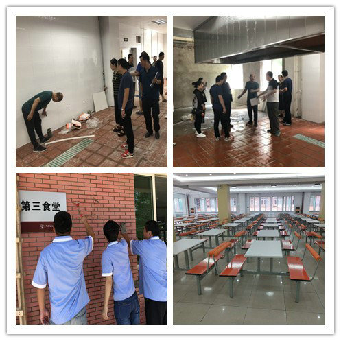 为了保证新学期之前新食堂能够顺利启用,后勤利用暑假完成了食堂装修装潢、水电燃气改造、加工设施及厨具餐具选购、开荒保洁、人员选配培训等大量繁杂的工作,餐饮员工冒着酷暑加班加点,在改造竣工后4天时间内完成了食堂启用的准备工作。今后后勤餐饮服务公司将再接再厉,认真贯彻落实学校各项要求,本着“以人为本、以食为天”的原则,努力提升新食堂管理水平,为东校园建设贡献力量。