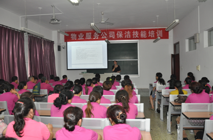 7月3日下午,物业服务公司在二教108教室开展了保洁技能培训,后勤党总支书记赵冬梅,人力资源版块科长王子军及80余名保洁员参加了本次培训。
