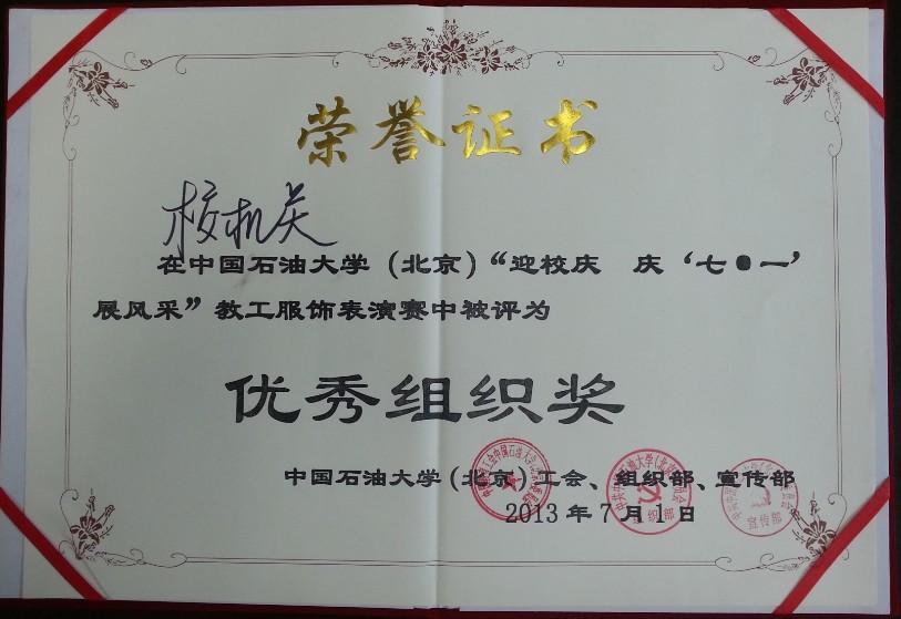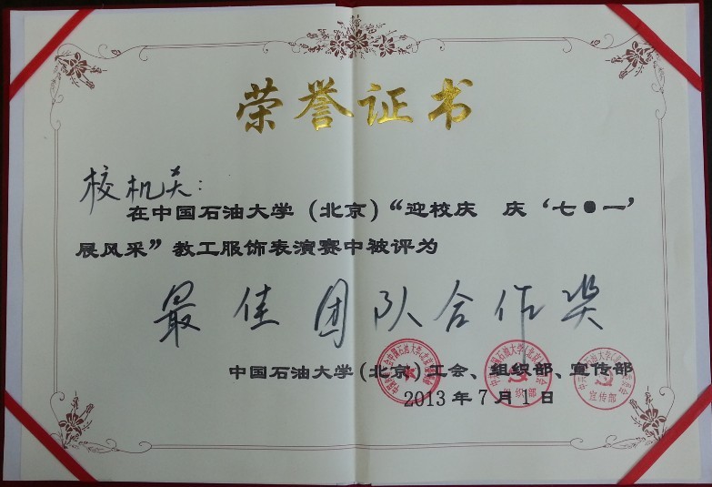 7月1日,为庆七一、迎校庆,KY开元集团官网入口在中油大厦三层报告厅举办了教职工服饰表演赛。机关工会精心组织队伍参加了此次比赛,最终获得了“最佳团队合作奖”和“优秀组织奖”两个奖项的好成绩。兰海帆、王成分获优雅女士和风度先生奖。