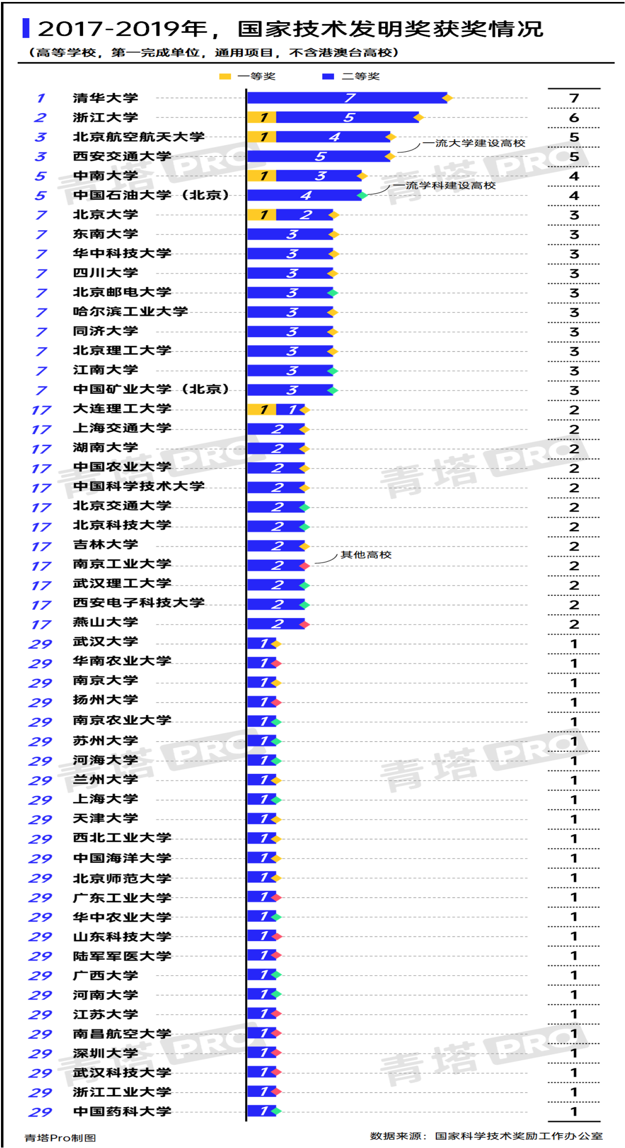 近期,根据国家科学技术奖励工作办公室公布数据,青塔统计了2017年-2019年高等院校(不含港澳台地区)荣获国家科学技术奖的获奖情况,并对数据进行了梳理和分析。KY开元集团官网入口(北京)作为第一完成单位,以三年间斩获4项国家技术发明奖的好成绩,在国家技术发明奖单项榜单中,并列全国高校第五位,在全国一流学科建设高校中,排名第一位。