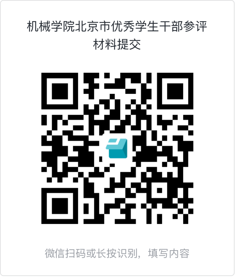 参评“北京市三好学生”需扫码上传附件2、附件5,参评”北京市优秀学生干部“需扫码上传附件3、附件6,材料提交时间截止11月15日22点,材料提交命名为”附件X—年级+专业+姓名“,学院将采取函评或线下答辩方式进行推荐评选,时间及方式待定。