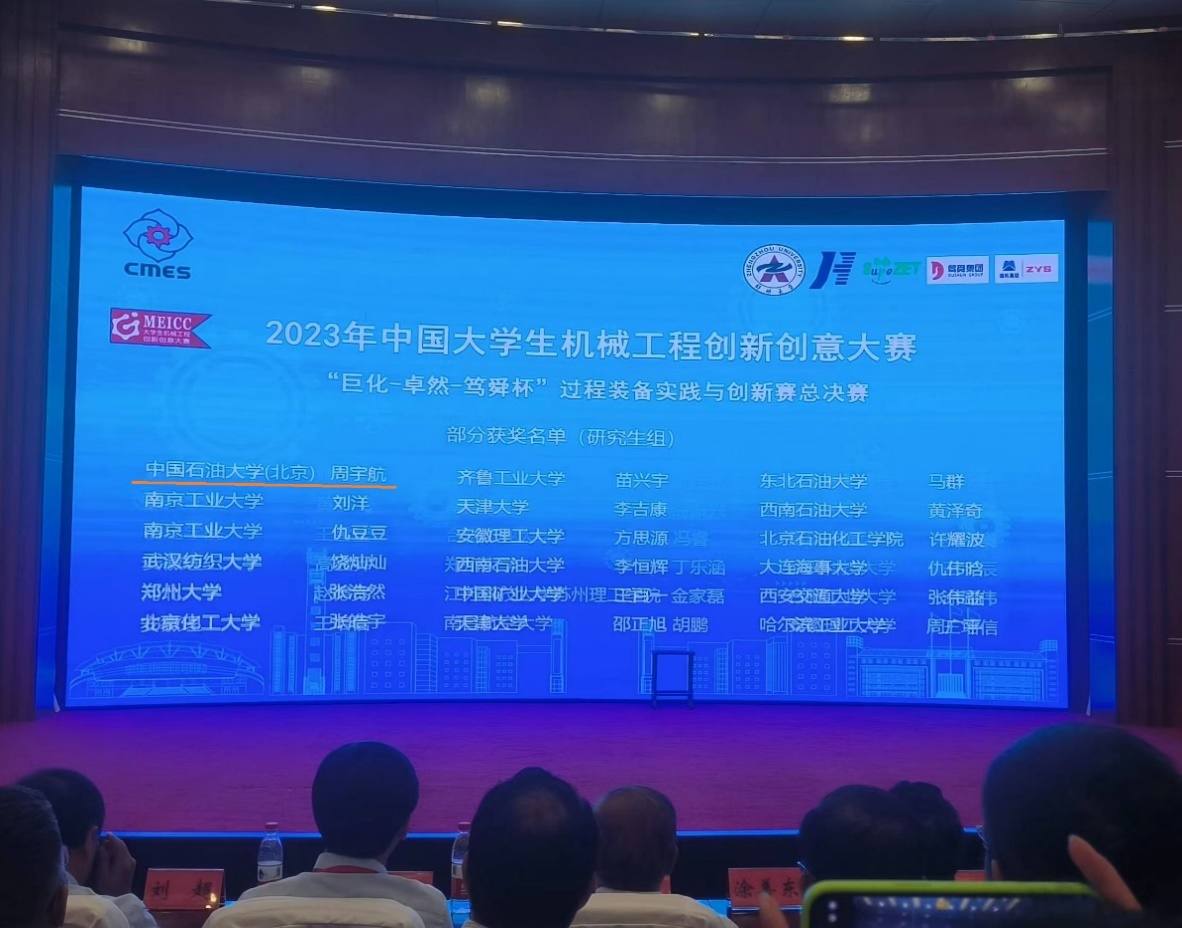 2023年8月26日,中国大学生机械工程创新创意大赛——“巨化-卓然-笃舜杯”第十四届过程装备实践与创新大赛全国总决赛在郑州大学落下帷幕。该比赛为过程装备与控制工程专业的核心赛事,我校在本次大赛中斩获全国总决赛一等奖、二等奖和三等奖各2项。机械与储运工程学院过程装备系周宇航、李森、程修福、王玉平组成的研究生组(指导教师:陈建义),周骏琦、杨溢、秦柯禹、刘世强组成的本科生组(指导教师:李岩),双双斩获全国总决赛一等奖。为了更好地展示作品的实力和水平,过程装备系特邀魏耀东教授作为现场带队教师参加大赛。