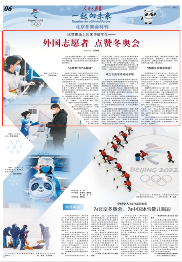 人民日报海外版:冰雪赛场上的来华留学生—— 外国志愿者 点赞冬奥会