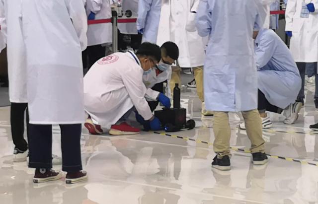 在性能竞赛环节,石大代表队在第一轮成绩不理想的情况下,及时调整实验方案,进行试剂的重新称量、配比,并结合赛前大量的实验经验,在第二轮超过中北大学、北京化工大学、清华大学等高校代表队,取得了距离终点线0.054m的好成绩。