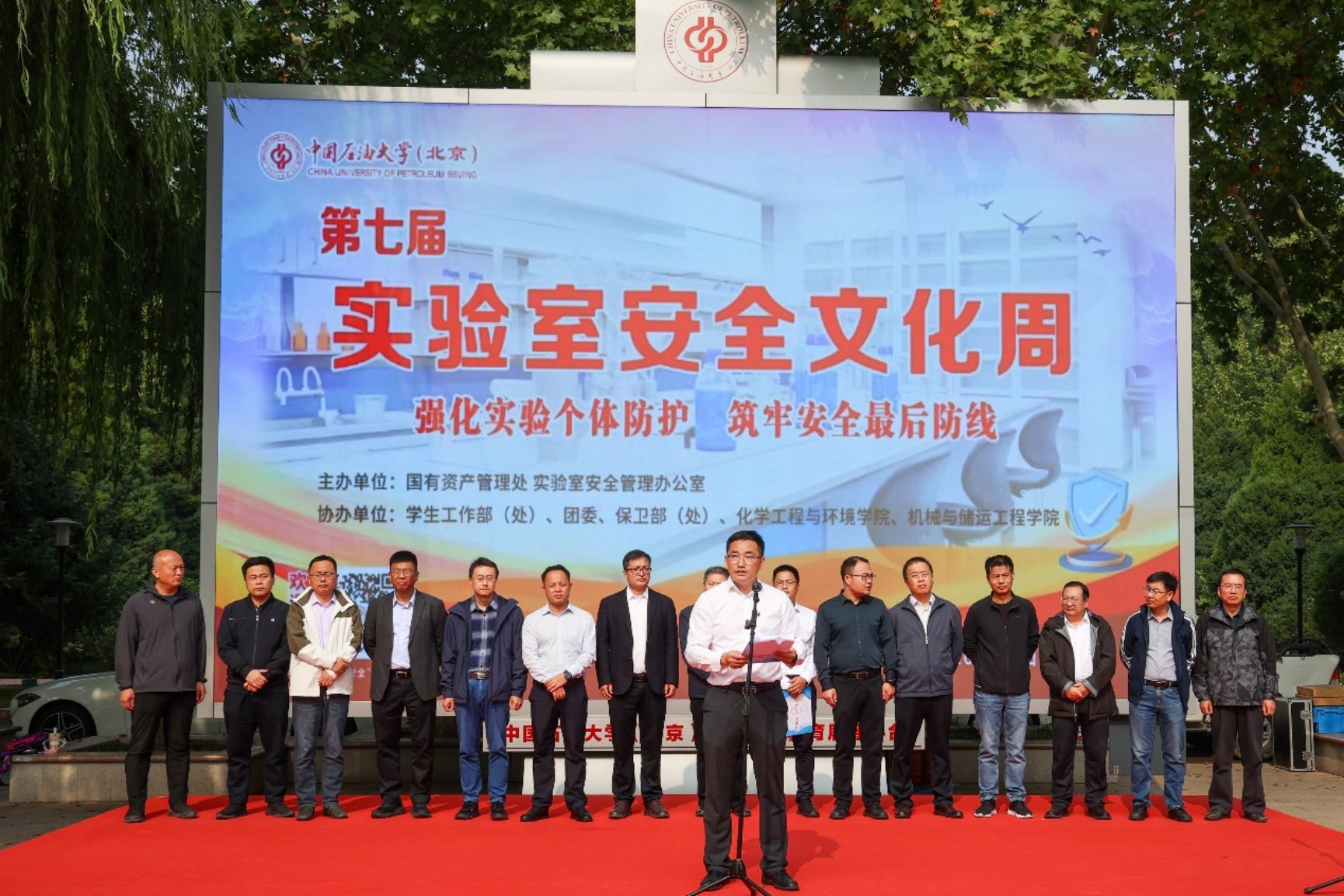 为强化实验室安全宣传教育,提升各单位及广大师生的安全防范意识及能力,推动实验室安全文化建设,10月中旬,中石大举办了以“强化实验个体防护,筑牢安全最后防线”为主题的第七届“实验室安全文化周”系列活动。10月14日,活动启动仪式在北校园南广场举行,校党委副书记蒲俊霖参加启动仪式并做动员讲话。