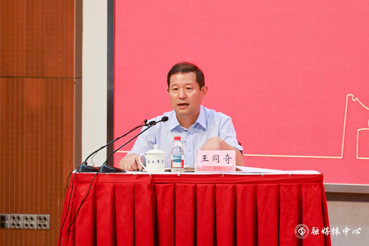 校长金衍充分肯定了学校2025年上半年重点工作推进情况,对下半年工作进行了部署。他强调,当前是教育强国建设开局关键期,也是学校抢占发展机遇的关键期,要紧紧围绕“教育强国建设,中石大何为”这一时代命题,确保发展形势认识到位、改革任务部署到位。一是以“三定”夯实学校高质量发展基础架构,结合处级干部换届工作进一步激发干部队伍履职活力,推动内部治理提质增效。二是以综合改革推动学校事业高质量发展,锚定一流大学和学科建设目标,落实学校《世界一流影响力建设三年专项提升计划》,补强短板弱项,突破瓶颈堵点。三是落实重点任务,坚持党建引领,推进全球卓越学科建设,深化教育模式和科研范式变革,培养造就高水平教师队伍,强化国际教育与科技合作,加强办学资源拓展统筹。