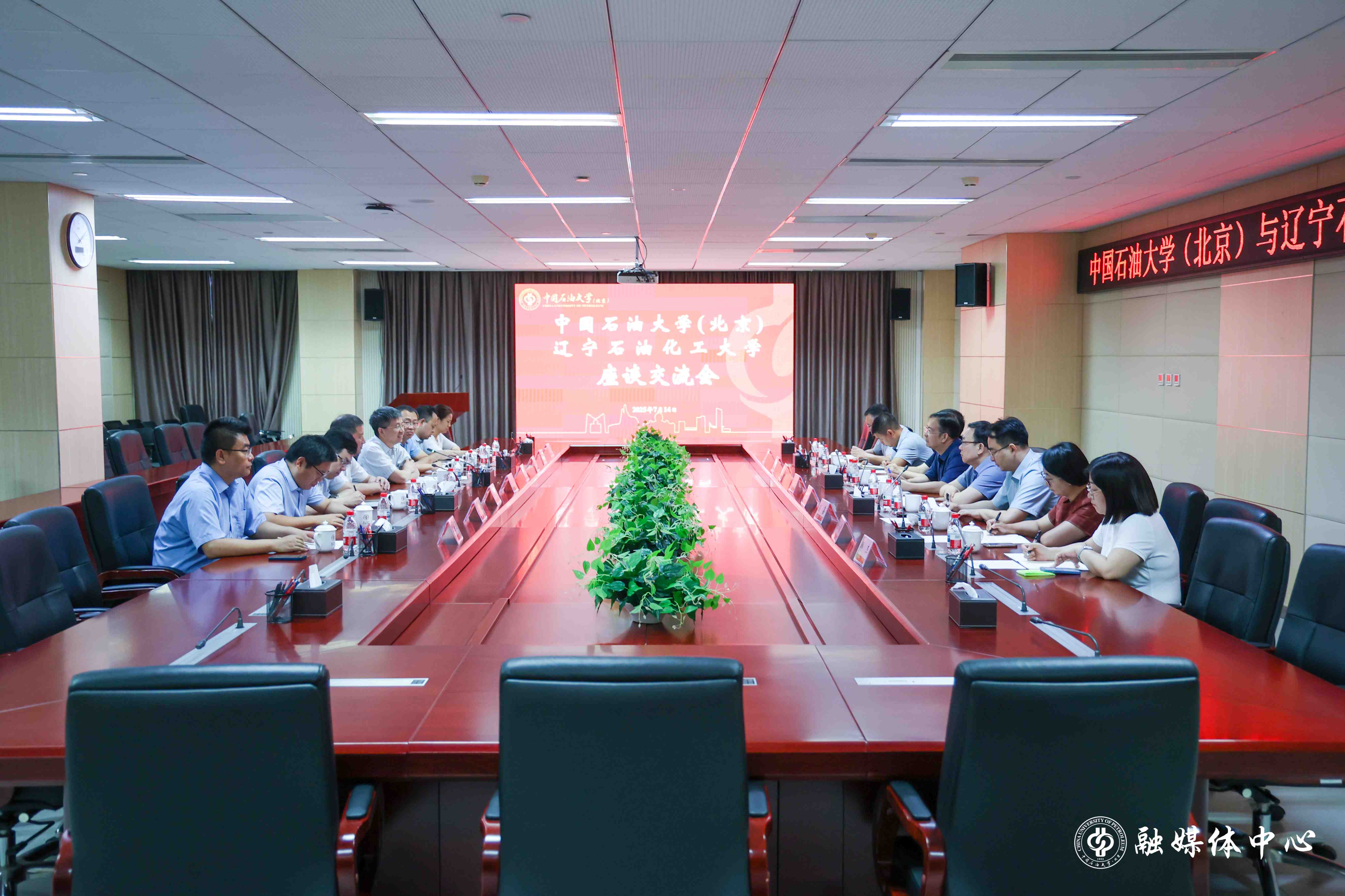 霍庆生、刘坚对中石大给予的支持表示感谢。他们表示,辽宁石油化工大学作为辽宁省内唯一具备石油化工全产业链学科的高校,肩负支撑辽宁石化产业基地建设的使命,两校签署的全面战略合作协议为辽宁石油化工大学的发展提供了强劲动力,希望双方以此次交流为新起点,在高水平平台建设、科技成果转移转化、高层次人才引育等方面深度合作,畅通定期会晤和协议推进机制,促进优势互补、相互赋能,共同为建设教育强国、科技强国、人才强国作出新的更大贡献。