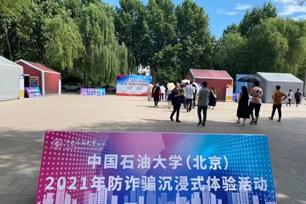 创新开展“防诈骗沉浸式体验”等场景化体验活动,让师生亲身体验诈骗套路;8月份以来,联合属地派出所组织开展反诈宣传进宿舍、进军训活动,为师生举办反诈宣传讲座3场,发放反诈骗手册和宣传单3000余份,手把手帮助师生安装“全民反诈APP”;联合宣传部开展“反诈微电影”征集展示活动,并筛选出10余部高质量原创作品参加昌平区活动评比。此外在日常工作中,利用安全工作会、学生工作例会等,定期通报相关案件,并开展防诈骗问卷调查,听取师生意见建议,持续提升工作实效。