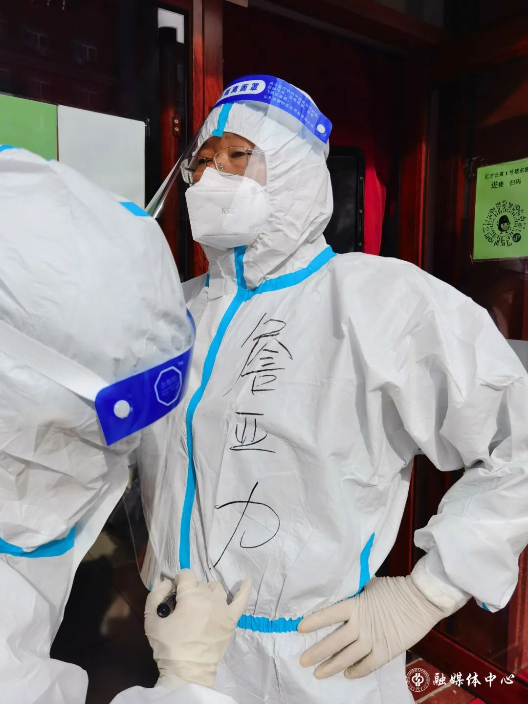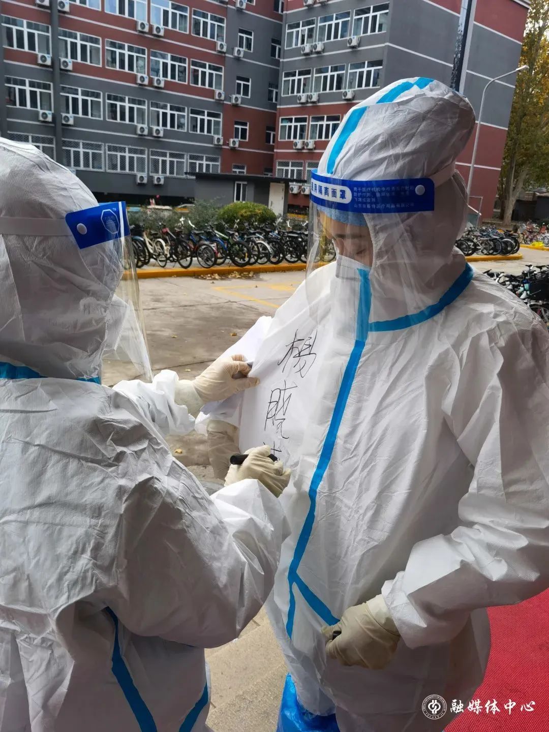 校机关的佟妍老师,家里老人刚刚回到老家,没人照看孩子。得知学校突发疫情需要突击队员时,她立刻给老人买了返回火车票,当天入校加入战“疫”。