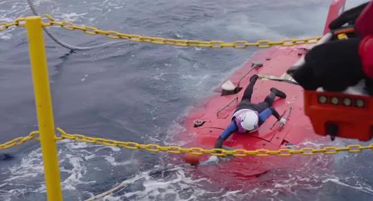 潜航员解开顶部限位缆绳