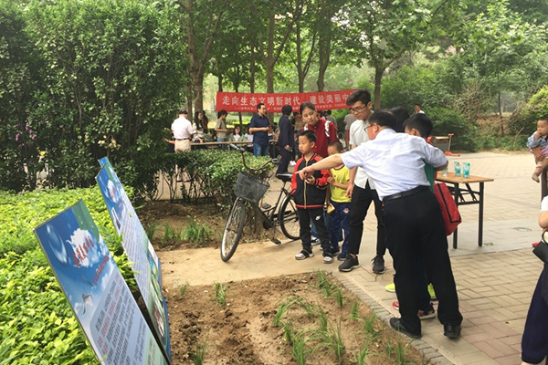 5月12日上午,石大地球科学学院地球化学与环境科学系教工党支部,研17级环科地化构造地质学学生党支部,环境科学本15、16级学生党支部,绿芽协会,与昌平创新园社区党支部联合开展了以“走向生态文明新时代,建设美丽中国”为主题的社区环保宣传教育活动。石大党委组织部、地球科学学院负责人,城北街道办事处负责人,创新园社区“双报到”党员,学院师生党员代表,以及附近居民共100余人参加了活动。