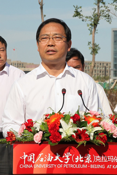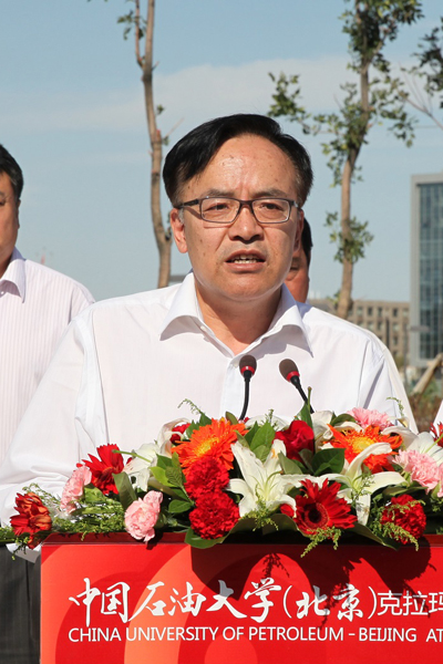 陈新发在致辞中说,一流的大学造就一流的城市,中国石油大学(北京)克拉玛依校区的启用仪式,不仅是克拉玛依发展历程中的一件大事,更是全市50万人民生活中的一件喜事。作为人才培养的基地、科技研发的高地,克拉玛依校区的建立,对于深化克拉玛依市“632”发展战略,推动产业迈向高端、城市走向国际具有重要的引领和支撑作用。他希望学校以服务经济社会发展为导向,积极打造具有竞争力的人才培养高地,为克拉玛依“世界石油城”建设提供有力的智力支持。