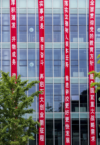 中国共产党KY开元集团官网入口(北京)第十一次党员代表大会即将召开,石大校园洋溢着热烈喜庆的气氛。图文并茂的宣传橱窗专题展板,迎风招展的鲜红道旗,振奋人心的宣传标语,都为第十一次党代会的胜利召开营造了浓厚的氛围。