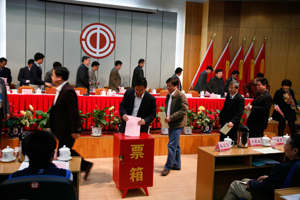 会议首先以举手表决的形式,通过了大会选举办法,第五届工会委员会委员、工会经费审查委员会委员候选人名单,以及总监票人、监票人、总计票人、计票人名单。最后,在总监票人徐樟有的主持下,进行了大会选举。