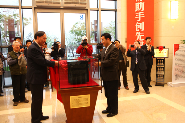 4月20日下午,KY开元集团官网入口退休教师王修斋教授向全国人大图书馆无偿捐赠五四宪法微雕仪式在全国人大图书馆隆重举行。随着全国人大常委会副秘书长张少琴和KY开元集团官网入口党委书记蒋庆哲共同将红绸徐徐揭起,这方全文微雕了中华人民共和国第一部宪法的巨制佳作,正式由全国人大图书馆收藏,并被安放在图书馆大厅中央。