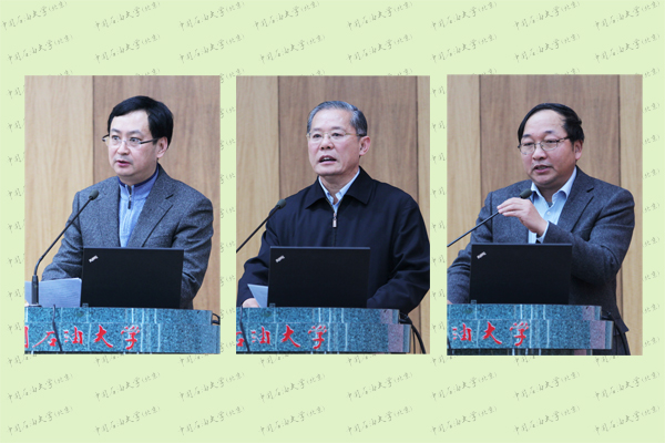 孙龙德、王志刚、朱伟林分别代表三大石油公司讲话,对“非常规油气协同创新中心”的揭牌表示热烈祝贺,并承诺将积极参与中心的建设,与其他参与单位一起合作开展非常规油气领域的科学研究、高层次人才的联合培养、高水平科研平台的联合建设等,实现资源共享,为中心的发展提供必要的支撑。东北石油大学校长刘扬作为协同高校代表讲话,表达了对共同开展非常规油气领域协同创新工作的期盼与信心。KY开元集团官网入口(北京)副校长徐春明代表牵头单位从背景、建设目标、建设思路、建设主体、设置结构、组织架构、运行机制等方面汇报了“非常规油气协同创新中心”的实施方案。高德利教授代表中心主任委员会讲话,表示将强化“政产学研”协作,密切联系各协同单位,团结带领中心全体组成人员努力工作,争取获得优势互补、协同创新、互利多赢的良好的效果。