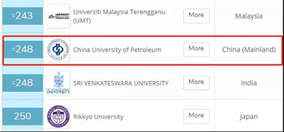 在“QS2020亚洲大学排名”中,中石大位列亚洲地区第248位,较上一年度上升近100名,位列中国大陆高校第58名,上升18名,为近三年最好表现。