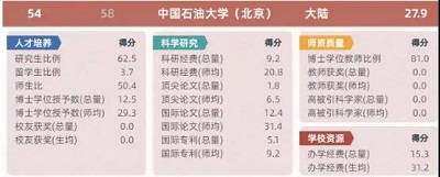在“软科2019中国两岸四地大学排名”中,中石大位列第54名,较上一年度上升4名,位列中国大陆高校第36名。师生比、博士学位授予数、科研经费、国际论文数、国际专利数、办学经费等分项指标得分均有提升,其中,国际专利-师均、办学经费、办学经费-生均涨幅分别为70.37%、50%、38.67%。