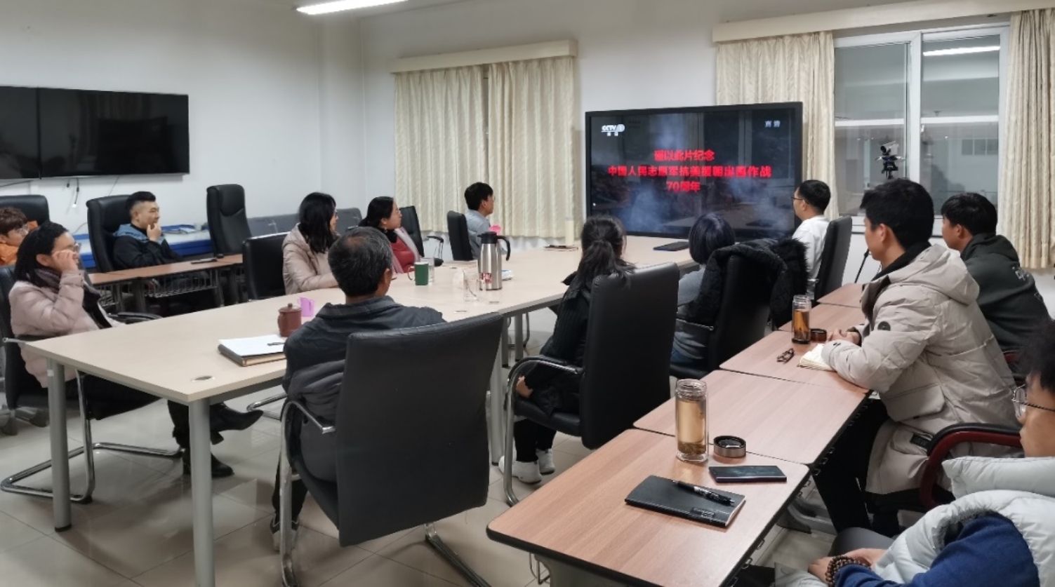 为深入贯彻落实习近平总书记在纪念中国人民志愿军抗美援朝出国作战70周年大会上的重要讲话精神,深入开展“四史”学习教育,大力弘扬伟大的抗美援朝精神,信息化管理处组织全体教职工集体观看大型电视纪录片《为了和平》之《正义担当》。