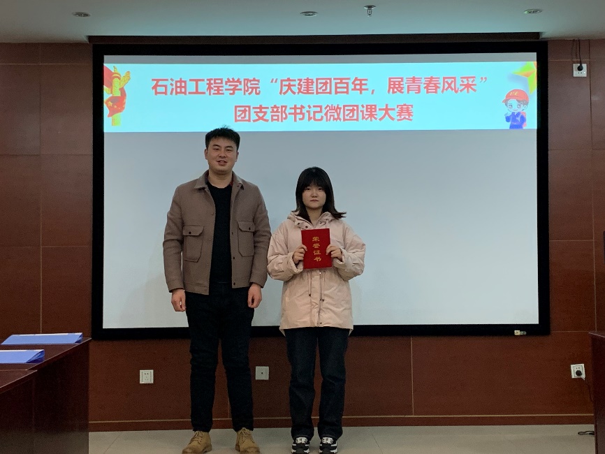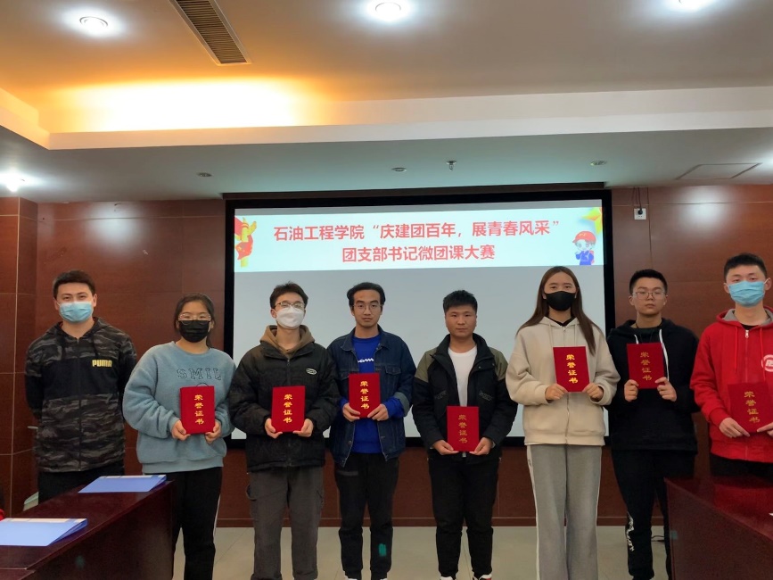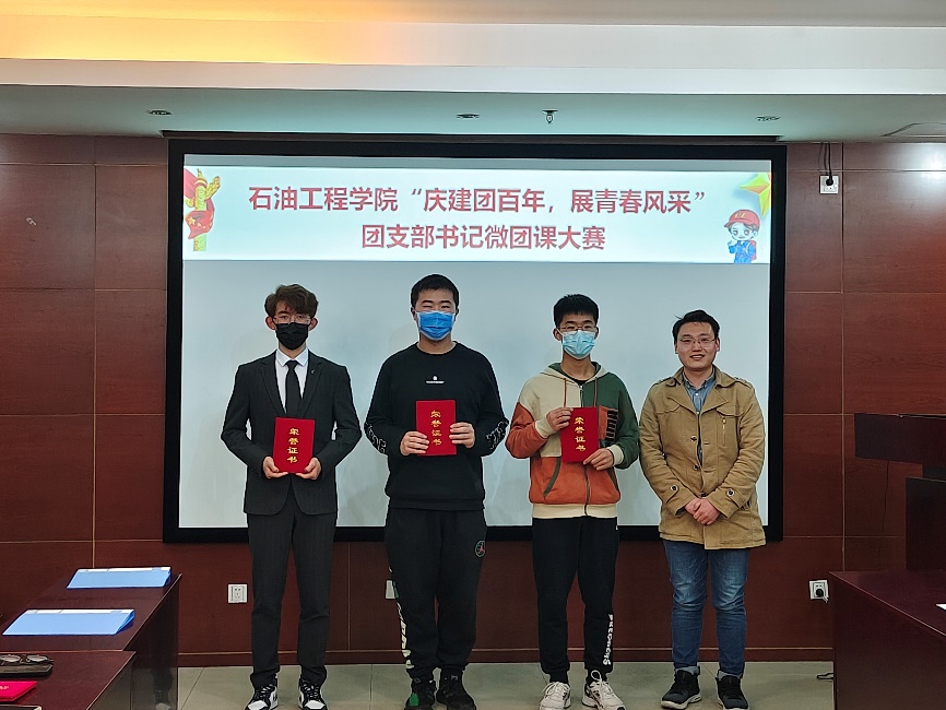 为庆祝建团百年,引导青年团员深入学习贯彻习近平新时代中国特色社会主义思想,学习党领导青年运动的光辉历程,唱响“请党放心,强国有我”的时代最强音,3月31日下午,石油工程学院举办“庆建团百年,展青春风采”团支部书记微团课大赛。学院团委书记肖亚楠及相关辅导员作为评委出席,12名学生团支部书记围绕选定主题进行讲述,最终评选出一等奖1个,二等奖3个,三等奖8个。