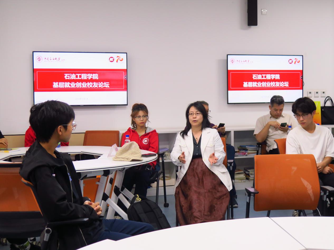 10月2日上午,石油工程学院喜迎70周年校庆系列活动——“基层就业创业校友论坛”在第四教学楼109教室举办,加拿大雷普索尔公司经理成荣霞,大港油田公司井下作业公司总工程师张康卫出席论坛并做分享,石油工程学院党委副书记刘东东、门成全老师、辅导员刘衡升以及20余名学生参加论坛,论坛由门成全主持。