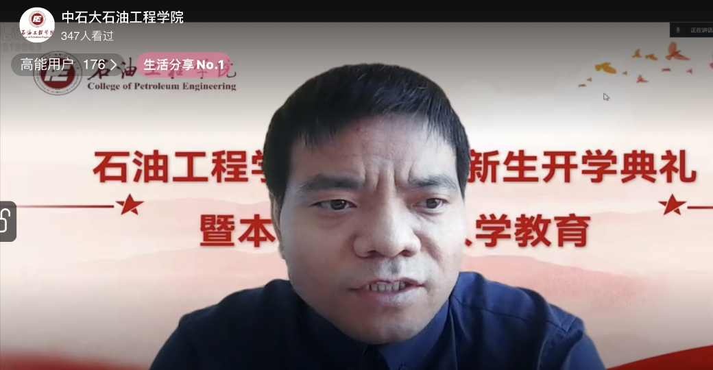 张广清就行业大环境、国际形势等方面对行业前景进行解读,使同学们了解到国家对保障能源安全的信心与决心和对石油人才的需求。他结合个人实际,表达了对同学们发展的期待。告诫同学们,加入石油行业不止是工作,更是理想,不止是挑战,更是机遇。同时对新生们提出了新的期望,希望同学们全面发展,热爱祖国,不负韶华,时刻保持一颗年轻的心,不断向前,为实现中华民族伟大复兴的中国梦贡献青春力量。