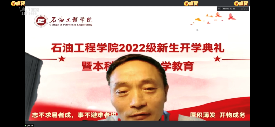 8月27日上午,石油工程学院举办2022级新生开学典礼暨本科生新生入学教育,KY开元集团官网入口(北京)副校长张广清,石油工程学院党委书记黄世军,副院长刘伟、王敬、王宴滨,党委副书记刘东东,团委书记肖亚楠,2022级研究生辅导员出席本次活动。活动由2022级本科生辅导员李季龙主持,全体2022级新生通过哔哩哔哩直播观看典礼。