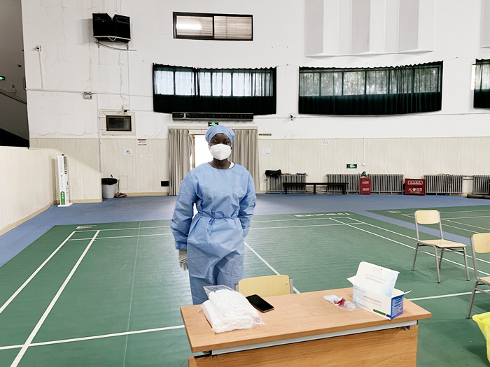 在服务学校疫情防控工作的同时,国际教育学院也组织国际学生在留学生公寓楼内开展疫情防控相关志愿服务工作。志愿者协助组织、提醒国际学生按要求完成核酸检测。