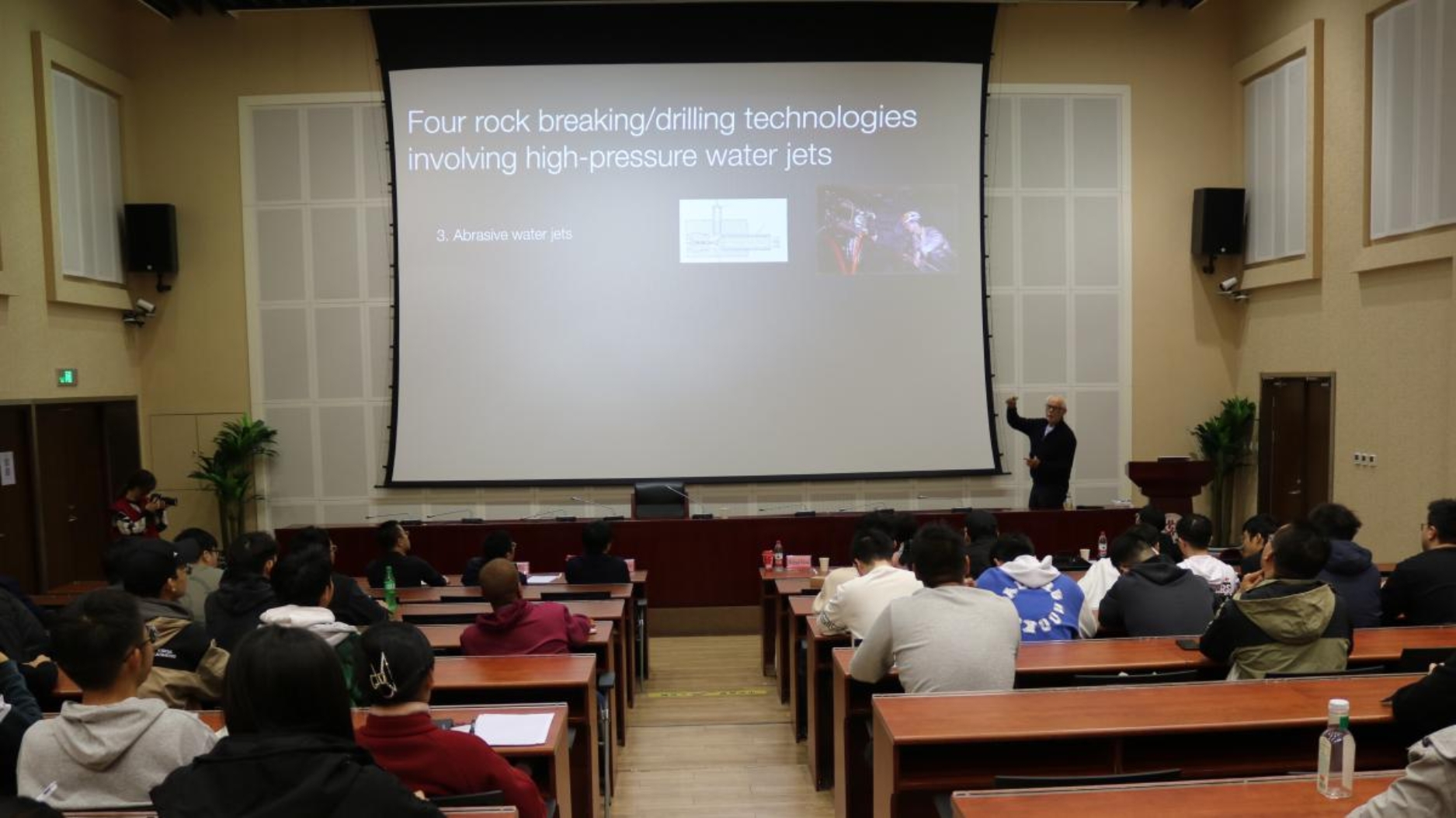 Michael Hood院士分别作了题为“Four rock breaking/drilling technologies involving high-pressure water jets”与“Net zero requires CCS, energy storage and nuclear”的报告。在第一个报告中,他详细介绍了在岩石加工和钻孔中应用于岩石破坏的四种不同类型的高压水射流,深入比较了机械加载和水射流作用下岩石破碎的基本原理,并着重讲解了与水射流相关的创新钻探新技术——小半径钻探(TRD)及其在煤层地面脱气中的现场应用。在第二个报告中,他阐述了实现二氧化碳当量零排放面临的巨大挑战以及所需的综合策略,强调了核能在能源结构中的必要性以及碳捕获与存储(CCS)和直接空气捕获(DAC)等新技术的需求,提及中国在相关领域的领先地位,呼吁共同应对气候变化。