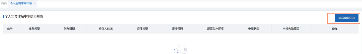 3.进入后会显示相关信息,如果没有信息,点击“填写申领信息”填写相关信息