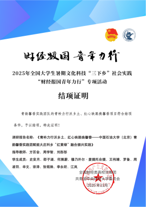 此次获评是对团队实践成果的充分肯定。未来,青韵馨香实践团队将继续以青春之力扎根乡土,在乡村振兴的道路上不断探索创新,以实际行动诠释中石大学子青春担当,为绘就乡村振兴的壮美画卷贡献更多青春智慧与力量。