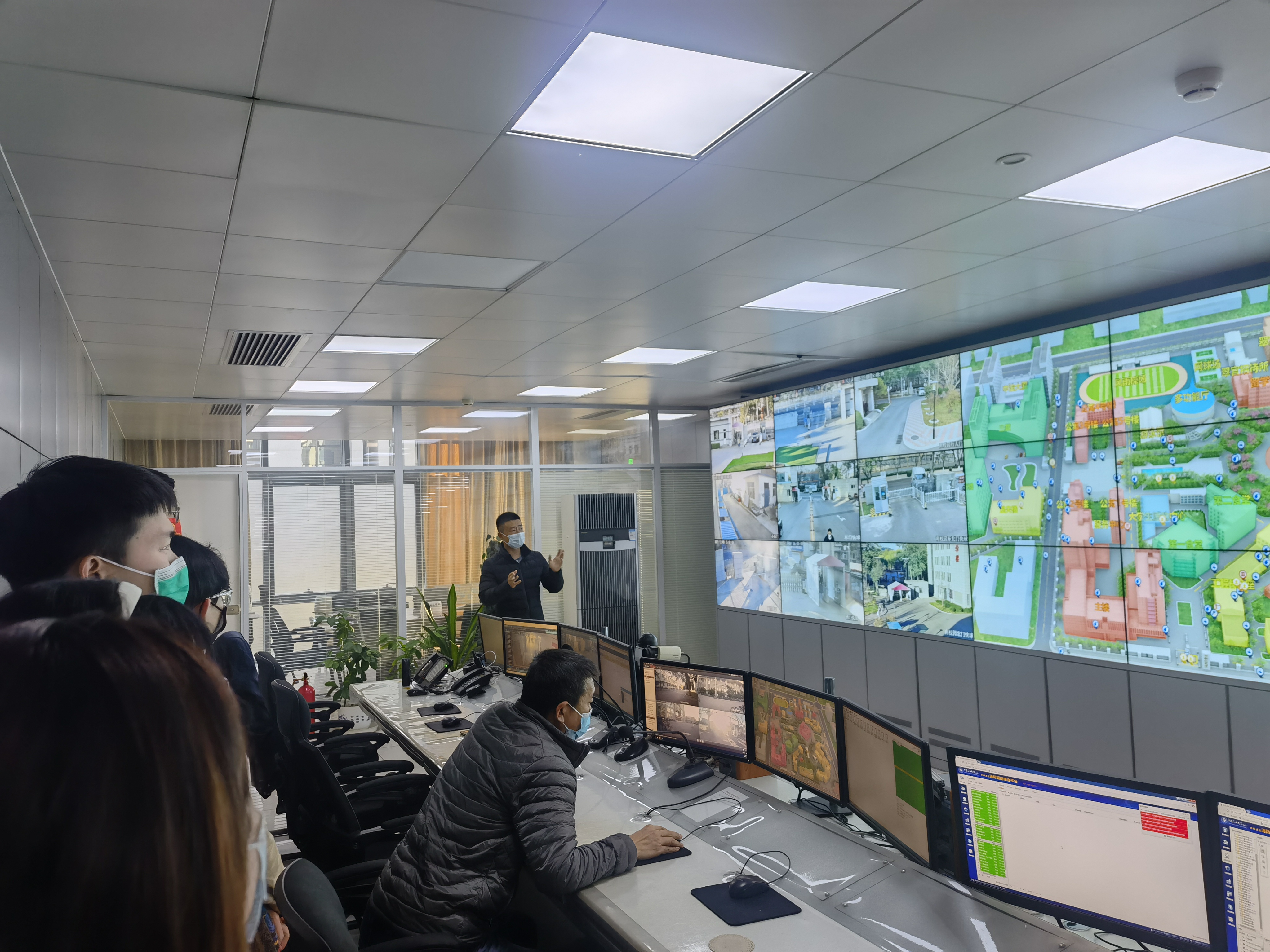 本安全第一党支部同学参观了保卫处办公室和学校应急指挥中心,同学们近距离感受了保卫处日常业务工作开展情况和校园技防建设成果。