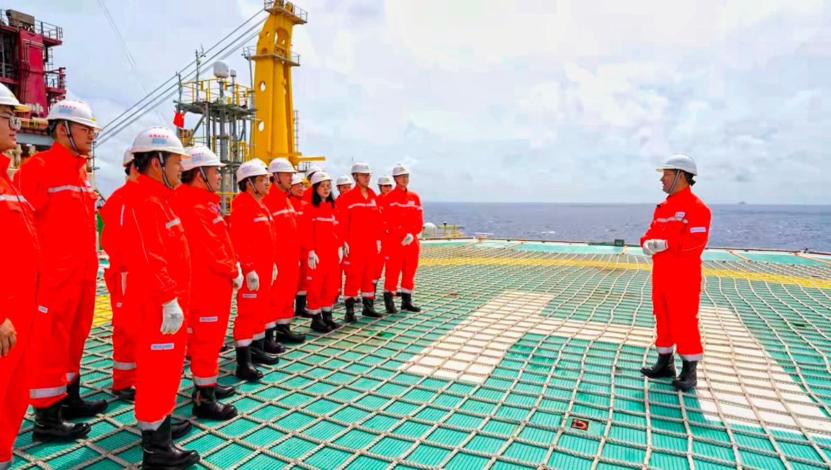 为深入贯彻落实习近平总书记关于海洋强国建设的重要论述,强化师生能源报国的初心使命,7月24日,中石大深海工程团队党支部、中海石油(中国)有限公司深圳分公司深水工程技术中心第二党支部、中海油田服务股份有限公司钻井事业部海洋石油981党支部,在我国首座自主设计建造的第六代深水半潜式钻井平台“海洋石油981”上,联合开展“深耕蓝色国土我与祖国共奋进”主题党日活动。校党委书记王同奇、党委副书记蒲俊霖,相关职能部门负责人和“本熹班”学员代表参加主题党日活动。