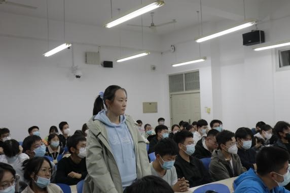 在主持人介绍完学长学姐优秀的履历后,进入互动环节,新生提问、老生回答。面对大一新生在大学学习方面存在的普遍疑惑,学长学姐做出详细回答。