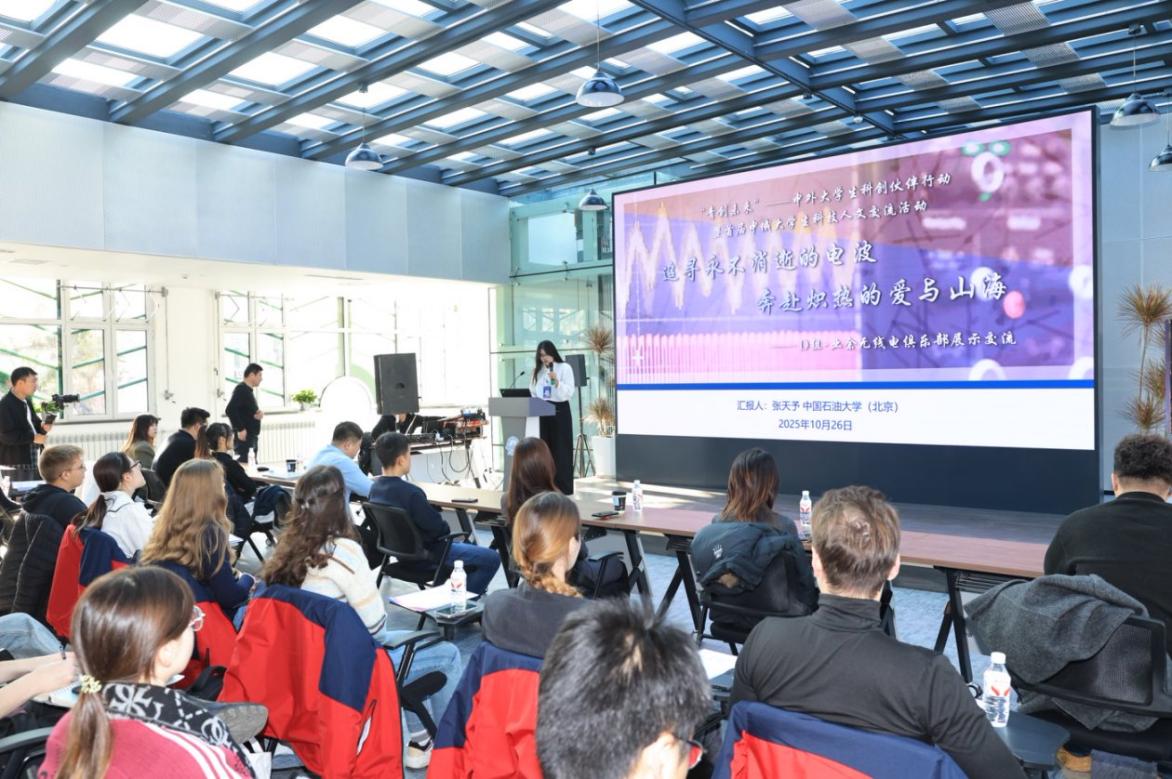 张天予聚焦中俄能源合作中的技术创新与绿色发展方向,结合我国在油气勘探开发、新能源利用等领域的实践成果,与中俄高校学子进行交流分享。